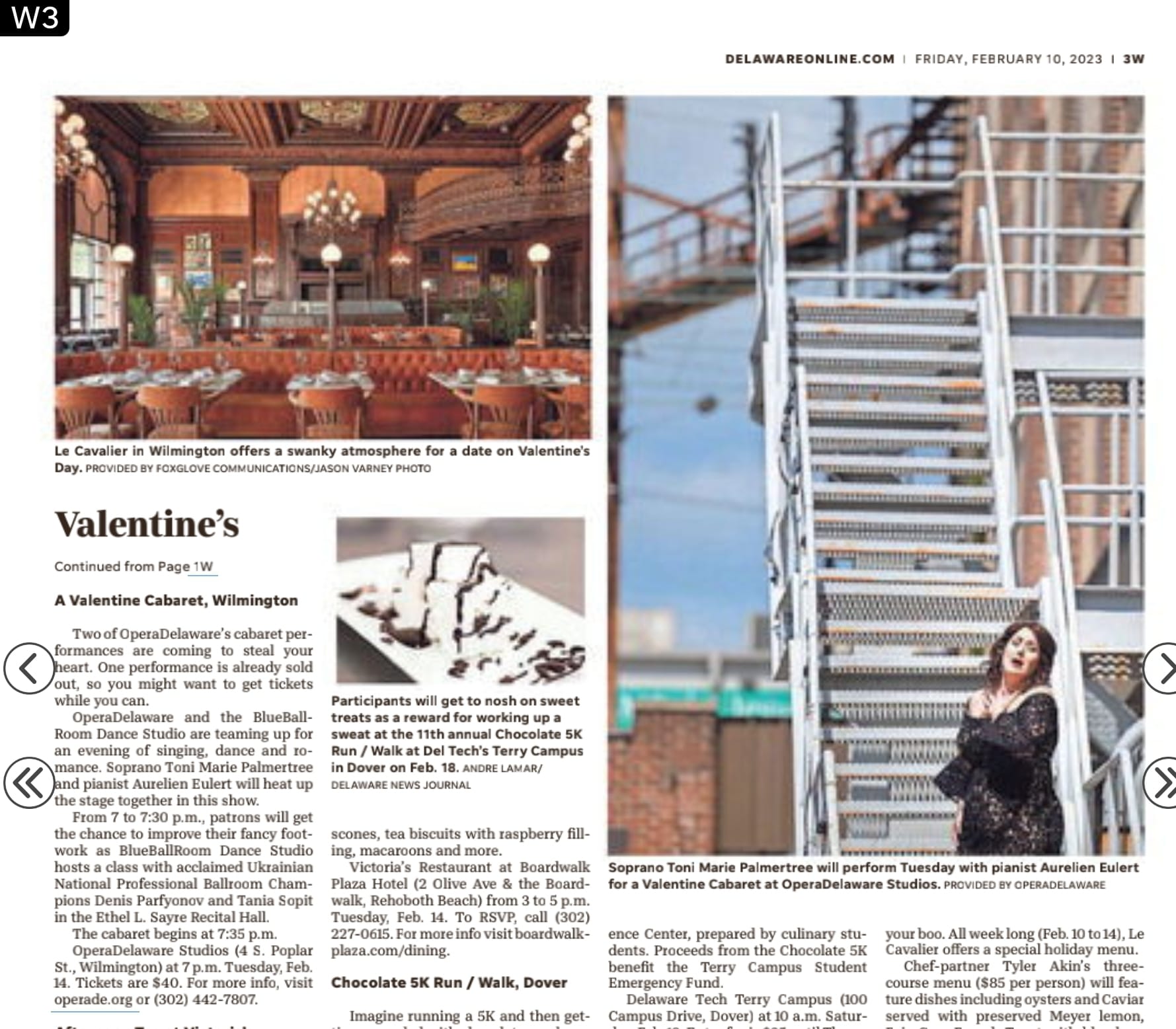 Статья A Valentine Cabaret Wilmington в печатном и электронном издании.